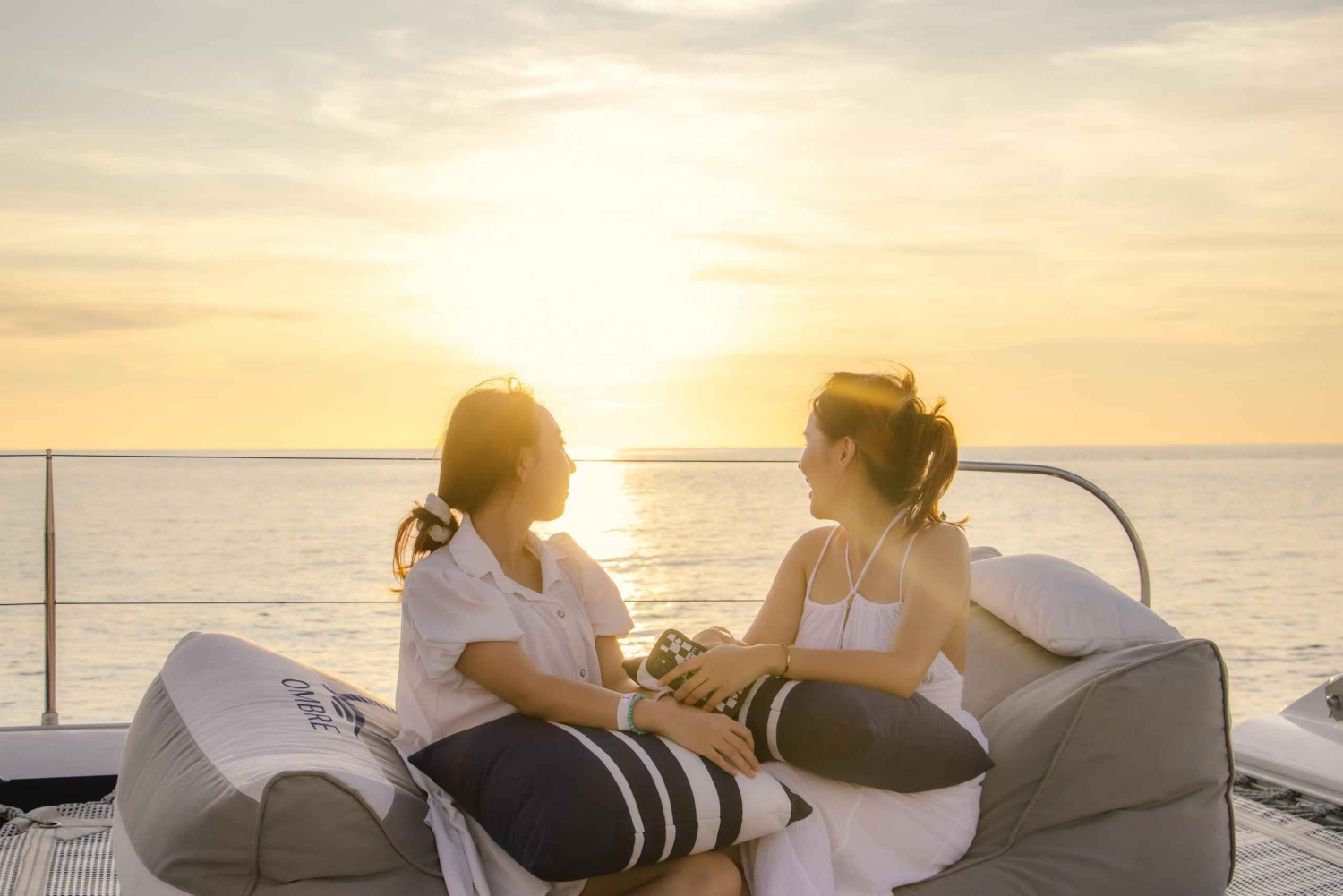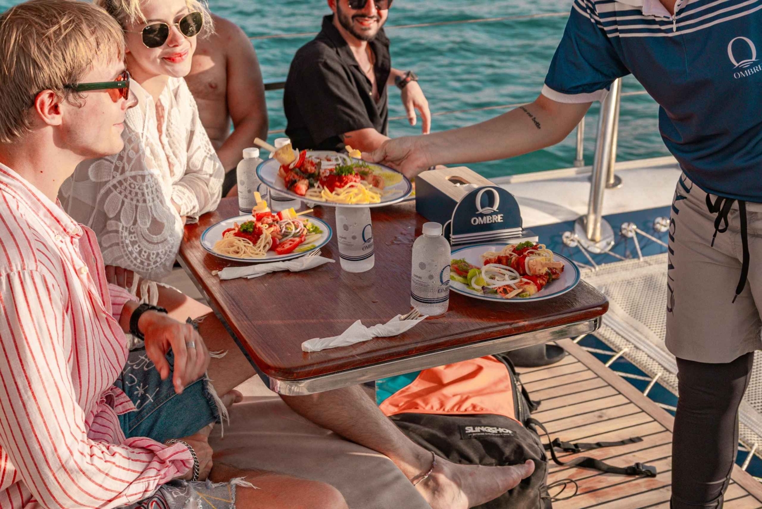 Odkryj imprezę na jachcie Ombre, ekskluzywną szansę na relaks w Phuket. Odpręż się na pokładzie luksusowego jachtu i rozkoszuj się ciepłymi promieniami słońca. Rozkoszuj się słońcem i wyrusz w podróż na trzy najbardziej kultowe wyspy Phuket: Coral Island, Racha Island i Promthep Cape Sunset. Wejdź na pokład jachtu Ombre Yacht w Phuket i wyrusz na przygodę. Elegancka konstrukcja jachtu umożliwia łatwe postoje w oszałamiających miejscach, zapewniając możliwość island hoppingu i przygody. Przeżyj raj na pokładzie Ombre Yacht, twojego biletu do słońca, morza i niezapomnianych chwil w Phuket. Ombre Yacht Phuket to luksusowy i niezrównany wybór dla urlopowiczów poszukujących idealnego połączenia ekstrawagancji, emocji i relaksu. Dzięki ich elitarnym podróżom Island Hopping, odkrywcy mogą odkryć zapierający dech w piersiach naturalny blask wysp Tajlandii z pierwszej ręki. Przeskakiwanie z jednej wyspy na drugą zapewnia niezapomniane wrażenia. Podróżni mogą podziwiać malownicze widoki w promieniach słońca podczas pięknej podróży po Morzu Andamańskim. Co więcej, elegancki jacht kultywuje magiczne i piękne doświadczenie dla odwiedzających, którzy mogą podziwiać oszałamiające zachody słońca na tle rozległego krajobrazu morskiego na pokładzie jachtu. Podczas rejsu będziesz mógł uwiecznić ponadczasowe chwile z bezkresnym oceanem jako tłem dla malowniczej pocztówki. Luksusowy czarter otwiera drzwi do ekscytujących eskapad i wodnych przygód dla tych, którzy pragną ekscytujących aktywności na wodach otaczających tutejsze wyspy. Niezależnie od tego, czy chcesz popłynąć na odległe wyspy, aby nurkować wśród tętniących życiem raf koralowych i ławic tropikalnych ryb, spróbować ekscytujących sportów wodnych, takich jak snorkeling i kajakarstwo, czy po prostu zrelaksować się na pokładzie, chłonąc tropikalne słońce, poczujesz się jak współczesna krucjata podczas odkrywania tych odległych oaz wyspiarskich i spędzisz przyjemne wakacje.Includes