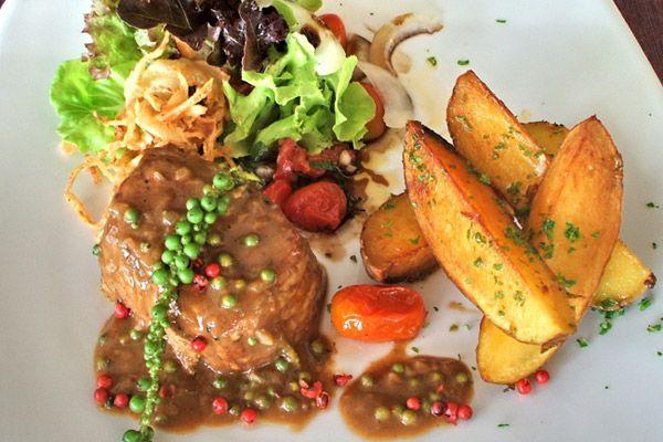Na plaży serwuje także innowacyjną kuchnię międzynarodową w ciągu dnia, która obejmuje tajskie potrawy i świeżo złowione lokalne owoce morza. Rozkoszuj się smakami dań takich jak ciepłe przegrzebki i bakłażan, marynowane słodkie papryki w oliwie z oliwek i occie balsamicznym, Smażony stek z tuńczyka, smażona cebula, czosnek i zioła oraz Plasterki grillowanego polędwicy wołowej z słodką papryką w sosie ostrygowym.