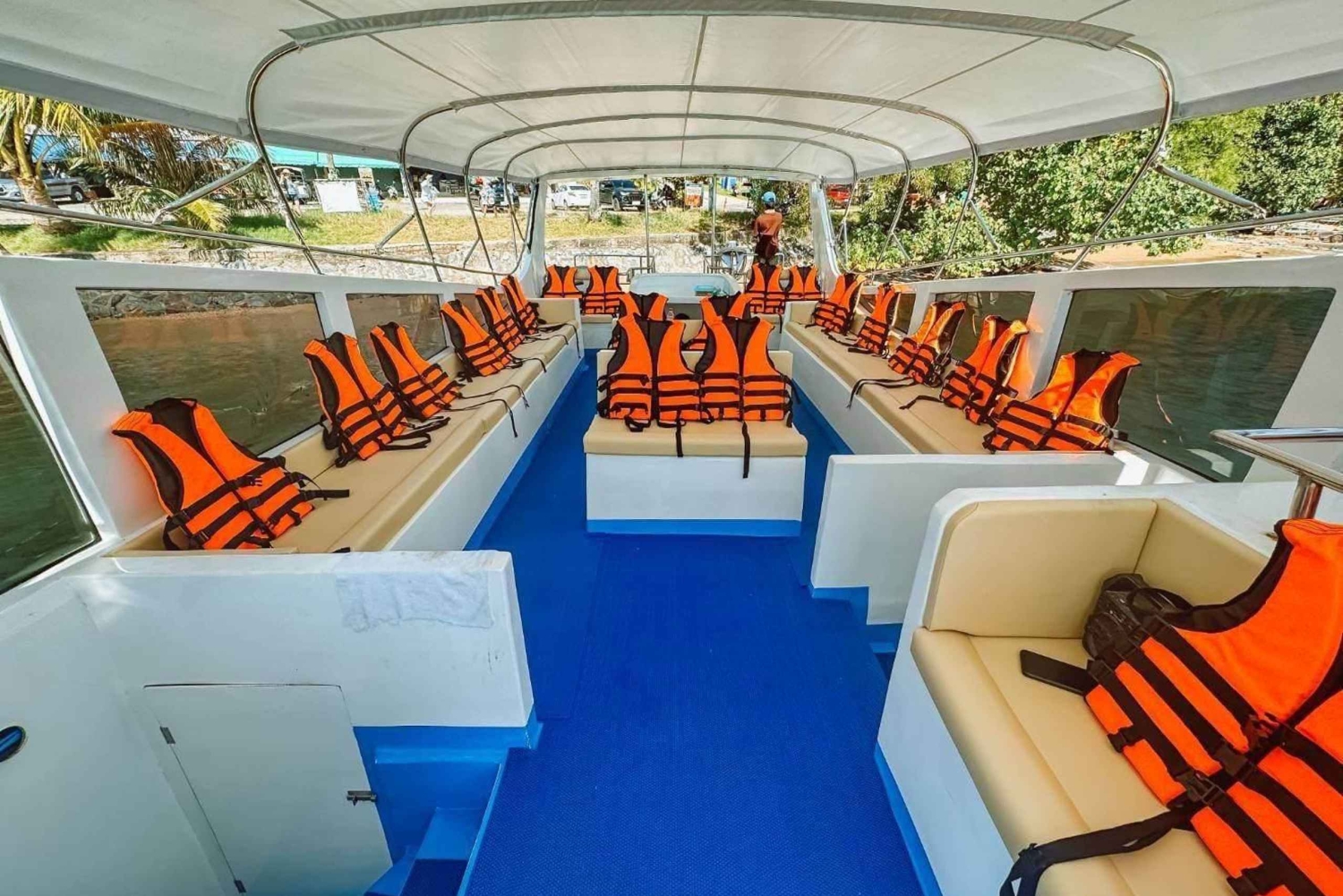Embarque em uma emocionante aventura de 1 dia com nossa excursão de catamarã de velocidade pela James Bond Island e Phang Nga Bay saindo de Phuket. Experimente a emoção de um passeio de catamarã veloz, explore ilhas panorâmicas, passeie de canoa por florestas de mangue e maravilhe-se com formações rochosas exclusivas. Visite a icônica Ilha James Bond, desfrute de um delicioso almoço em uma vila flutuante e relaxe em uma praia pitoresca. Esse passeio é perfeito para quem busca aventura, para os amantes da natureza e para aqueles que desejam explorar as paisagens deslumbrantes da Tailândia. Você começará sua aventura com um conveniente serviço de busca no hotel entre 7h00 e 9h00, seguido de uma partida do Píer Ao Por às 9h30. A primeira parada é na Ilha Panak, onde você será cativado por sua beleza natural. Em seguida, siga para a Hong Island para uma emocionante experiência de canoagem entre as florestas de mangue, onde você será cercado pela vegetação exuberante e pelas águas tranquilas. Continue sua jornada para ver as formações rochosas exclusivas do tipo Scooby Doo antes de chegar à icônica James Bond Island e Khao Ping Kan. Esses famosos pontos de referência, apresentados no filme 'O Homem com a Pistola de Ouro', oferecem oportunidades incríveis para fotos e uma chance de reviver a magia do filme. Em seguida, saboreie um delicioso almoço na vila flutuante da Ilha Panyee. Esse vilarejo único, construído sobre palafitas sobre a água, oferece uma visão fascinante da vida local. Depois do almoço, explore a encantadora Ice Cream Cave ou Diamond Cave, onde você ficará fascinado com as formações rochosas naturais e os interiores frios. O dia termina com uma parada relaxante na Ilha Naka, perfeita para você nadar, relaxar ou mergulhar com snorkel nas águas cristalinas. Você retornará ao píer de Ao Por e será transportado de volta ao seu hotel, encerrando um dia inesquecível de aventura e exploração.Includes