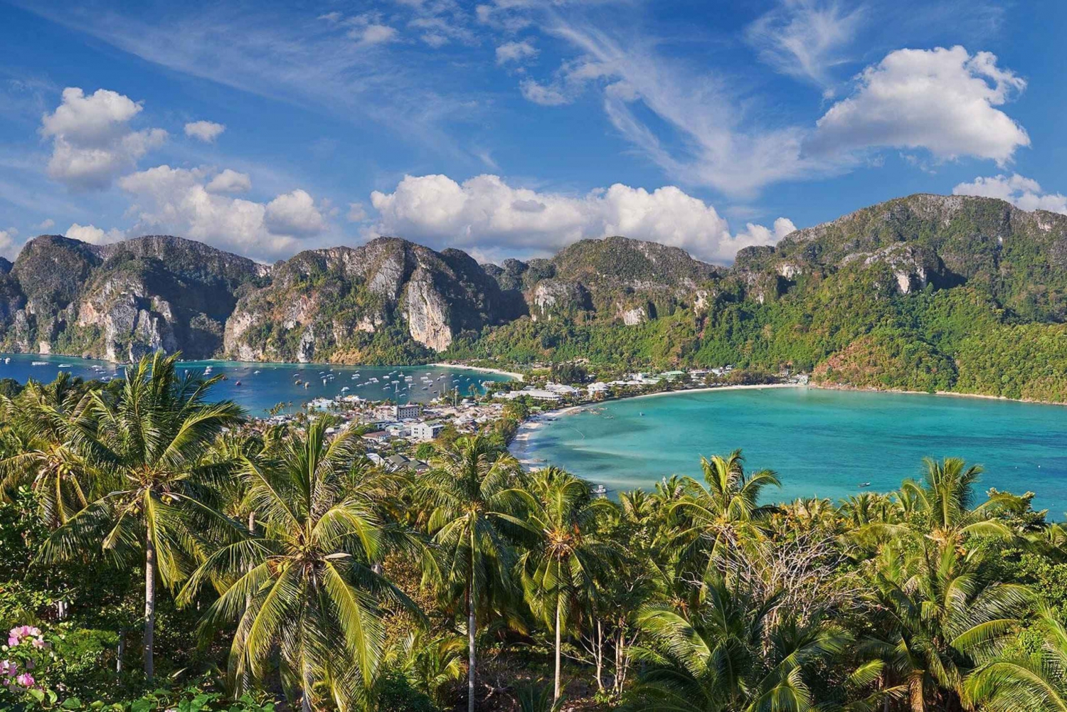Embarca na derradeira excursão a partir de Phuket Boat Lagoon Marina, onde te espera uma emocionante viagem de lancha rápida para te levar até ao deslumbrante arquipélago de Phi Phi. Mergulha no fascÃnio de Maya Bay, tornada famosa por 'The Beach', e descobre um mundo subaquático vibrante através de aventuras de snorkeling com barbatanas fornecidas. Explora o fascÃnio ancestral da Gruta Viking e o encanto lúdico da Praia dos Macacos, captando cada momento com a tua máquina fotográfica. Recarrega as baterias com um tentador almoço buffet na costa de Phi Phi Don, saboreando os sabores da Tailândia no meio de vistas panorâmicas. Relaxa nas areias imaculadas da ilha de Khai, onde as águas azul-turquesa convidam a banhos de lazer e a momentos de tranquilidade. À medida que o dia se desenrola, mergulha na beleza deste paraÃso tropical, criando memórias para guardar. Regressa a Phuket Boat Lagoon Marina, reflectindo sobre as maravilhas do teu inesquecÃvel passeio a Phi Phi. De vistas cativantes a momentos serenos, esta expedição promete uma viagem imersiva ao esplendor natural da Tailândia, com barbatanas incluÃdas para experiências de mergulho com snorkel aprimoradas.Includes