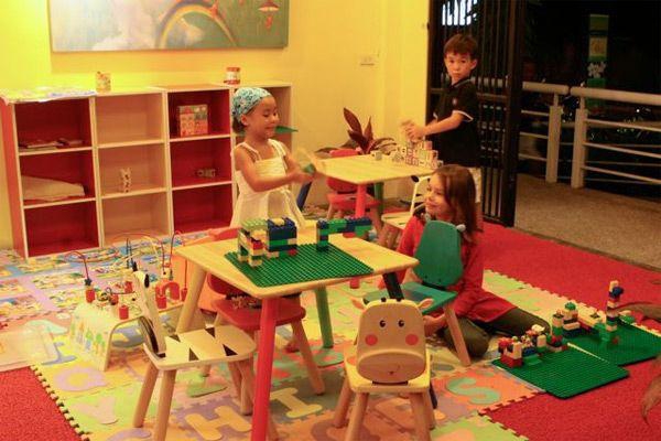 O restaurante oferece duas áreas de estar, uma área ao ar livre com lustres destacando os móveis de vime e decoração, além da área de pizza casual com seu playground infantil.