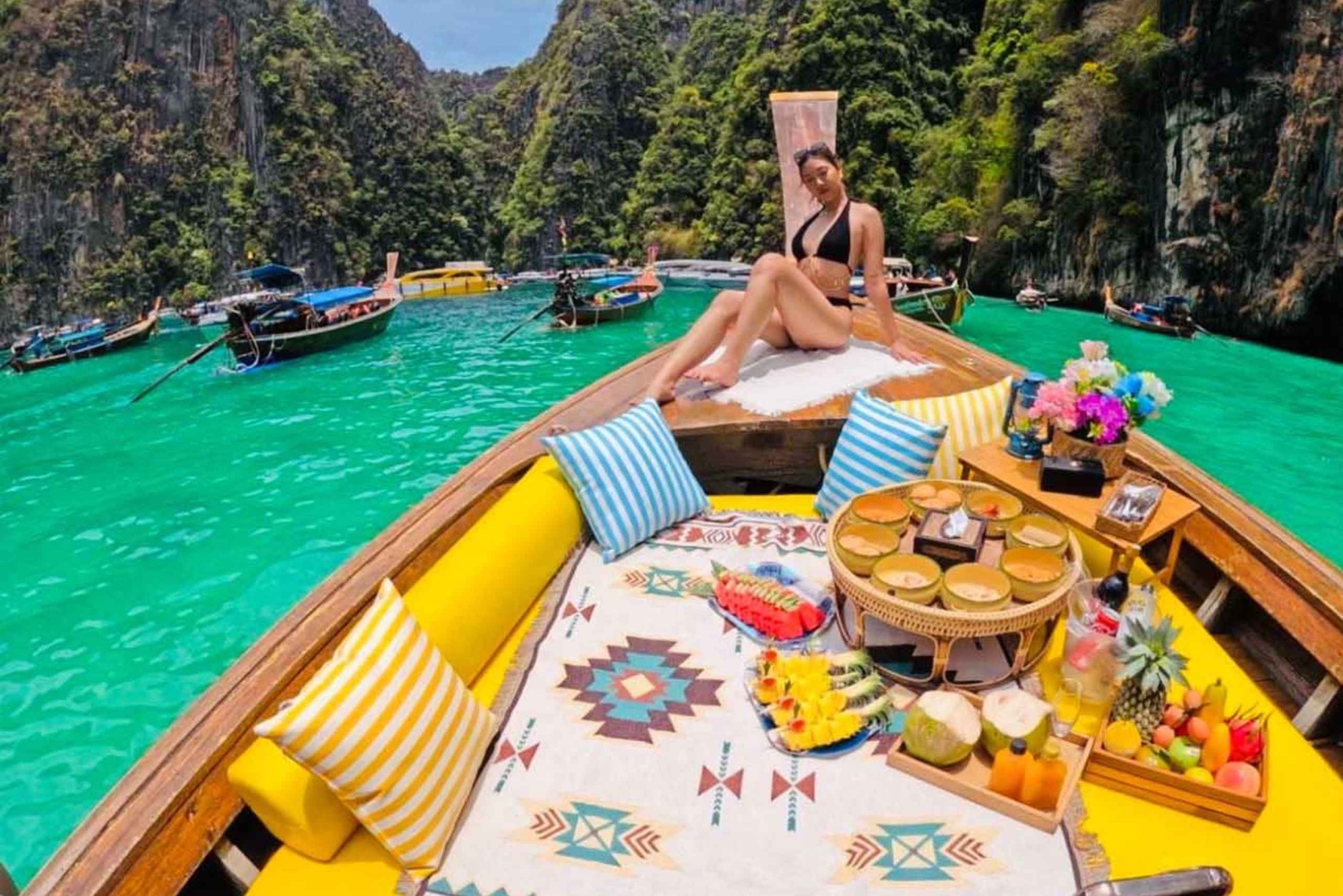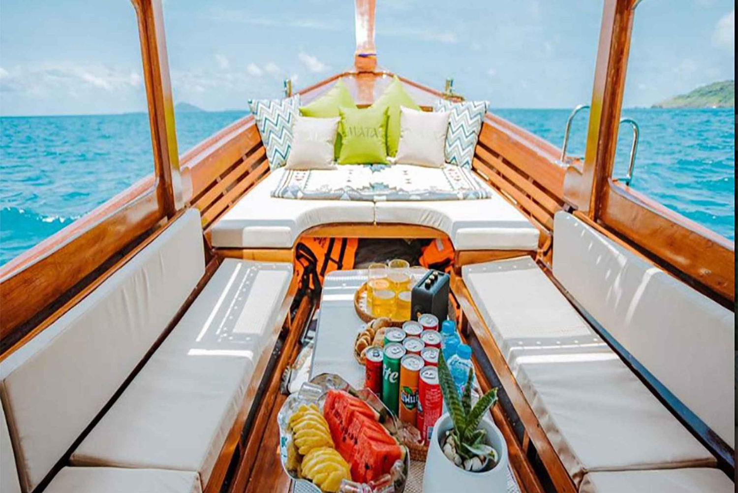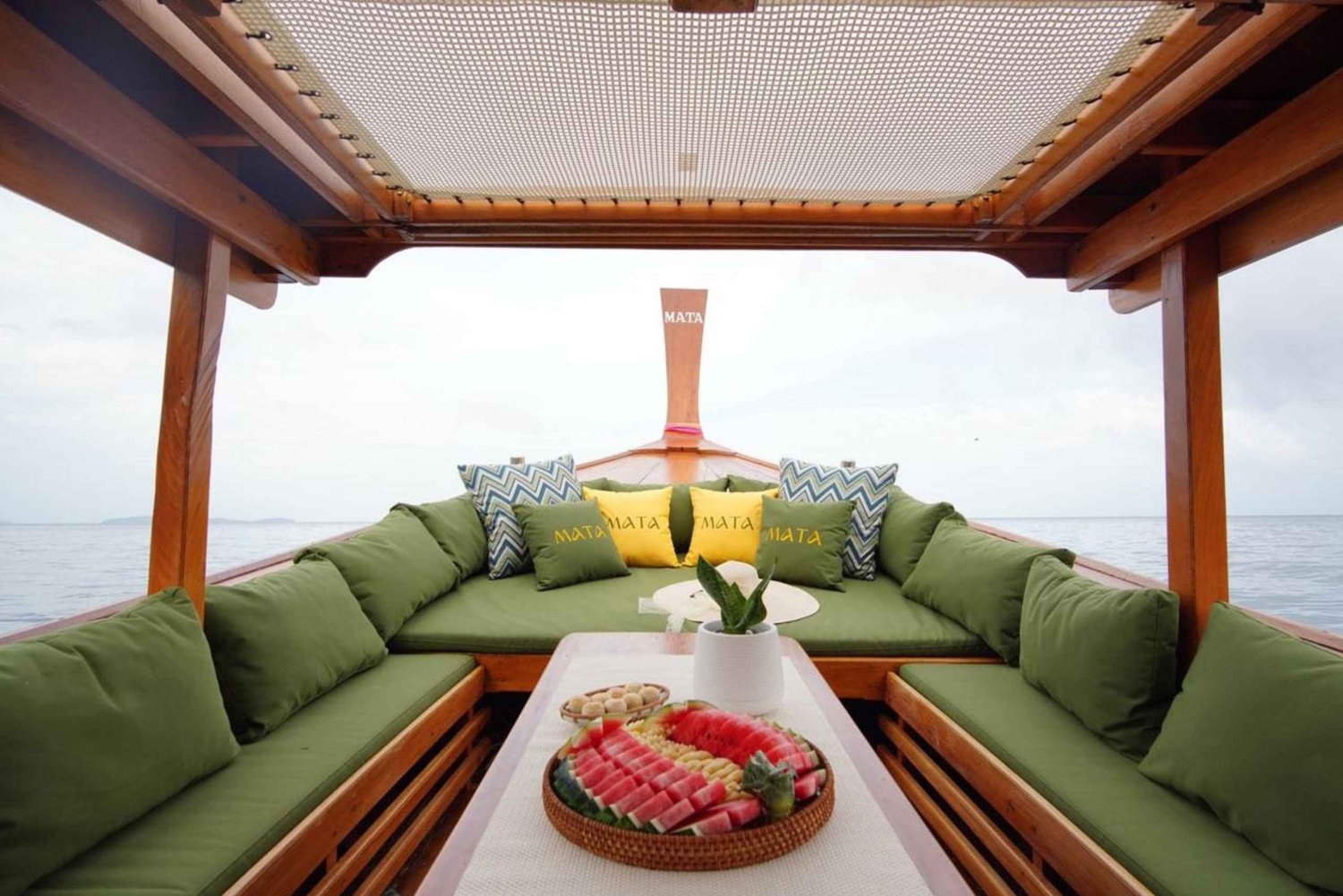 Роскошная поездка на длиннохвостой лодке из Пхукета на острова Кхай. Насладитесь частным путешествием с изысканными закусками и напитками на борту и настройте свой маршрут в соответствии со своими интересами.