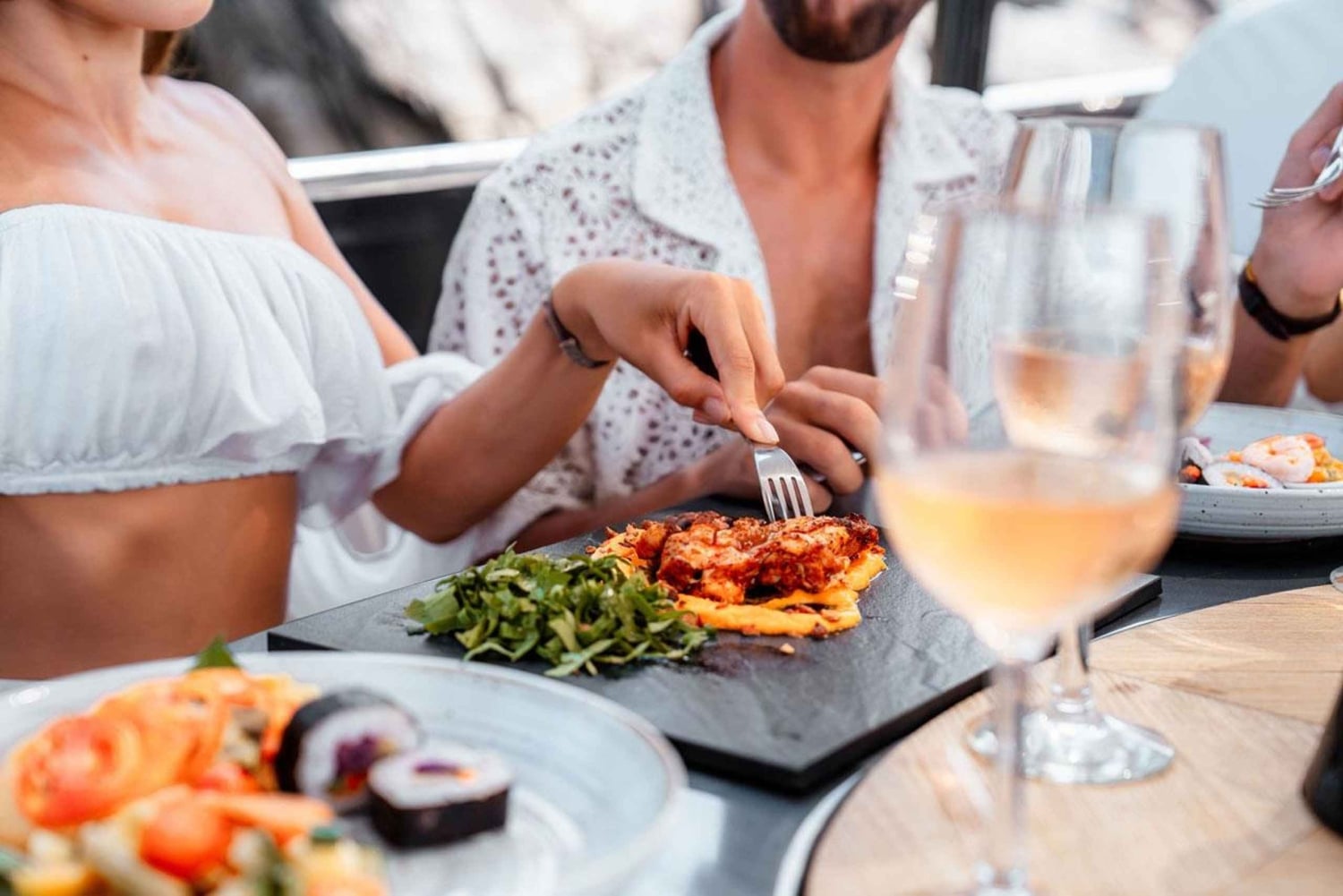 - Поужинайте стильно на яхте и насладитесь вкусным изысканным обедом на море.