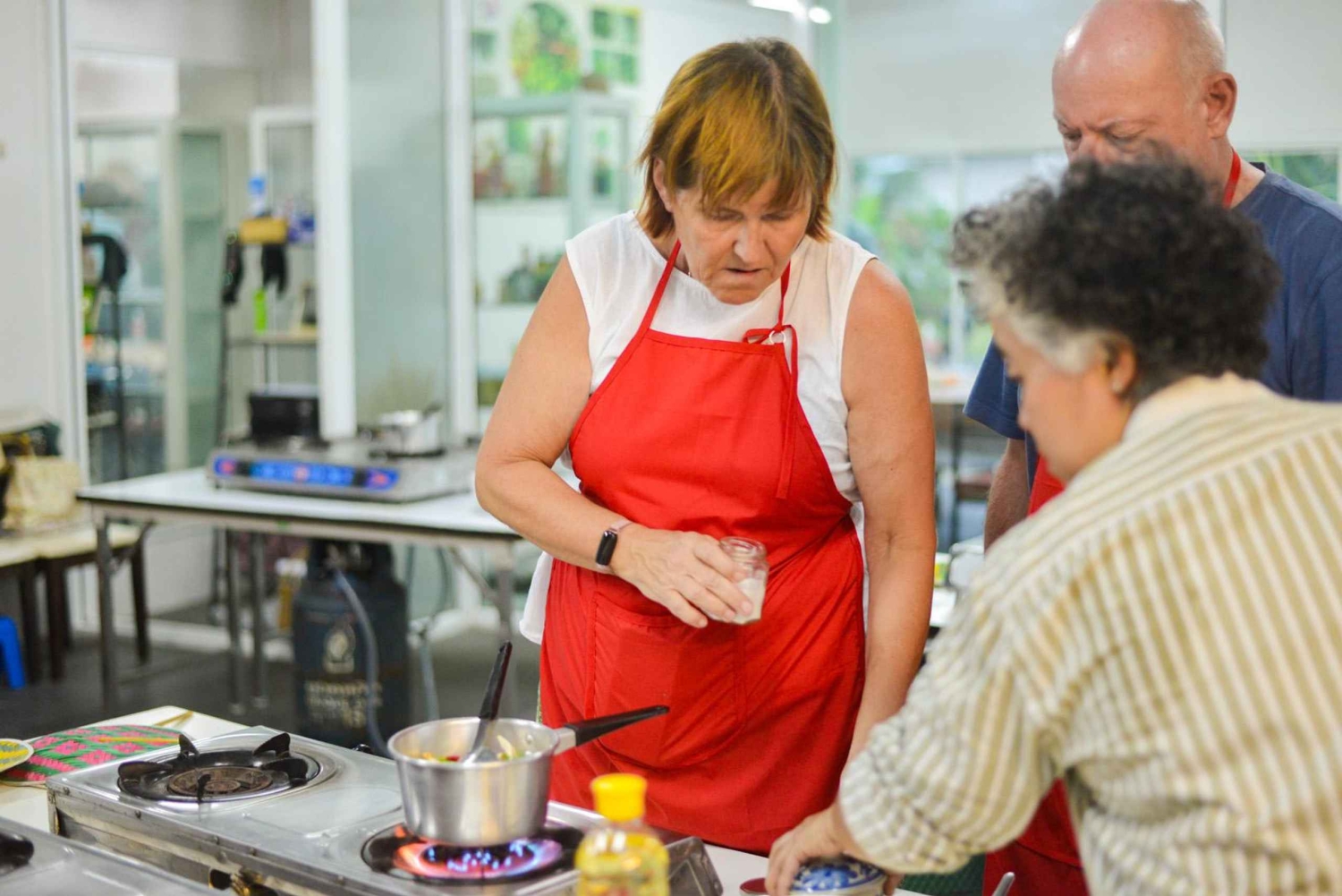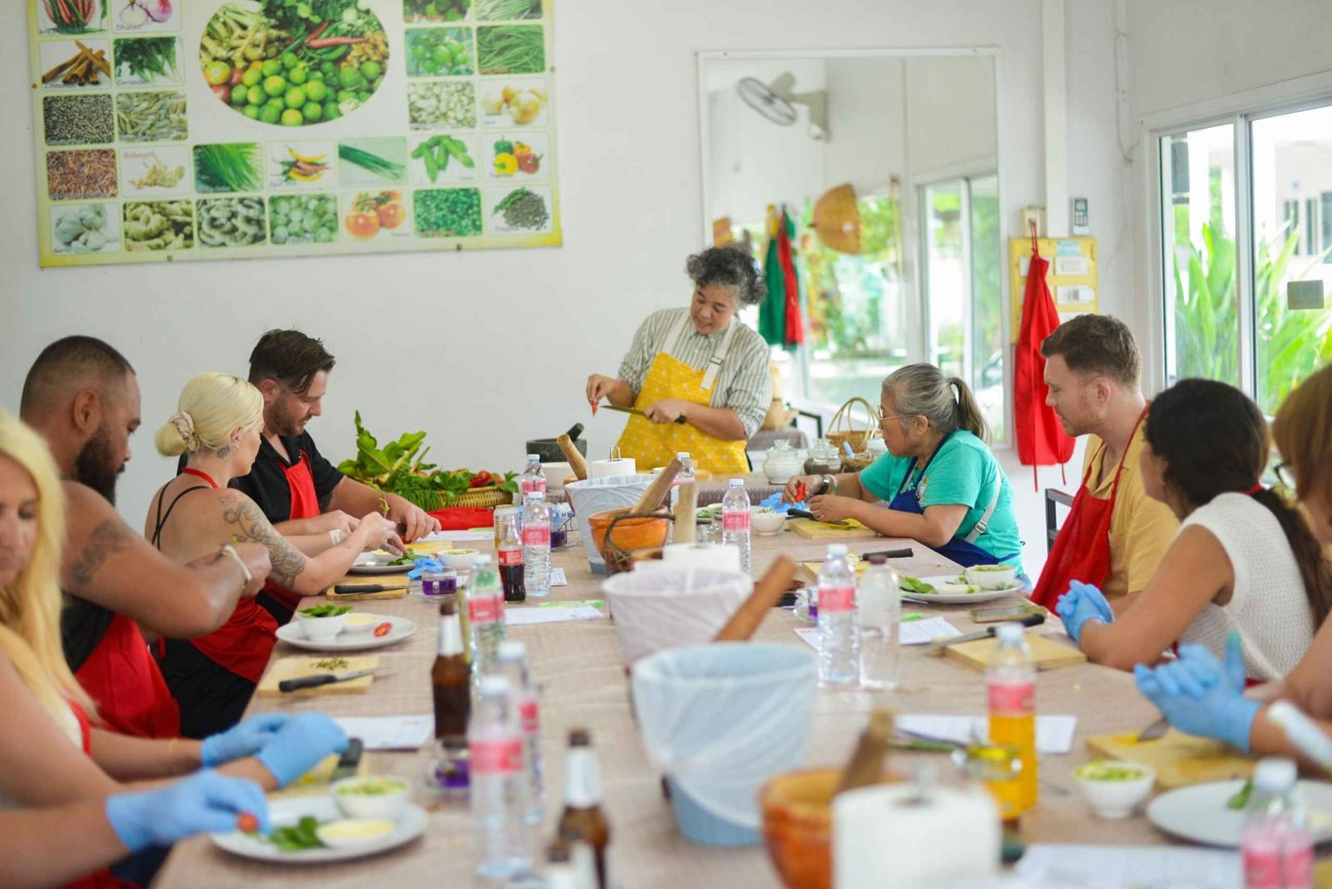 Отправьтесь в кулинарное приключение с уроком тайской кулинарии на полдня, который идеально подходит для семей, пар, индивидуальных путешественников и групп. Начните с посещения местного рынка за свежими ингредиентами, а затем научитесь готовить четыре известных тайских блюда в дружелюбной обстановке с сертифицированными тайскими поварами. Этот урок ограничен 12 участниками, он гарантирует практический опыт и подготовит вас к воссозданию этих восхитительных блюд дома. Ваше путешествие начинается с трансфера из вашего места проживания в кулинарную школу за 30–40 минут до начала урока. Начните с 30–45-минутной экскурсии по местному рынку, где вы узнаете о необходимых травах, овощах и специях, используемых в тайской кухне. Этот захватывающий опыт предлагает подлинное ощущение тайской культуры и ее ярких кулинарных традиций. Вернувшись в школу, проведите два часа на традиционной открытой кухне, полностью оборудованной всем необходимым. Под руководством сертифицированных тайских инструкторов вы откроете для себя секреты приготовления четырех настоящих тайских блюд. Практический класс одновременно образовательный и развлекательный, позволяя вам создать и насладиться собственным тайским обедом или ужином. Все блюда халяльные, а меню может быть адаптировано для вегетарианской диеты по запросу. Это гарантирует, что каждый может насладиться богатыми вкусами тайской кухни, независимо от диетических предпочтений. Обстановка в небольшой группе обеспечивает индивидуальный и полезный опыт, позволяя тесно взаимодействовать с инструкторами и другими участниками. Занятие завершается вкусной едой, приготовленной вами, и трансфером обратно в ваш отель. Вы уйдете с новыми кулинарными навыками, прекрасными воспоминаниями и более глубоким пониманием тайской культуры. Присоединяйтесь к нам для этого обогащающего кулинарного опыта, доступного как на утренних, так и на дневных сессиях.Includes