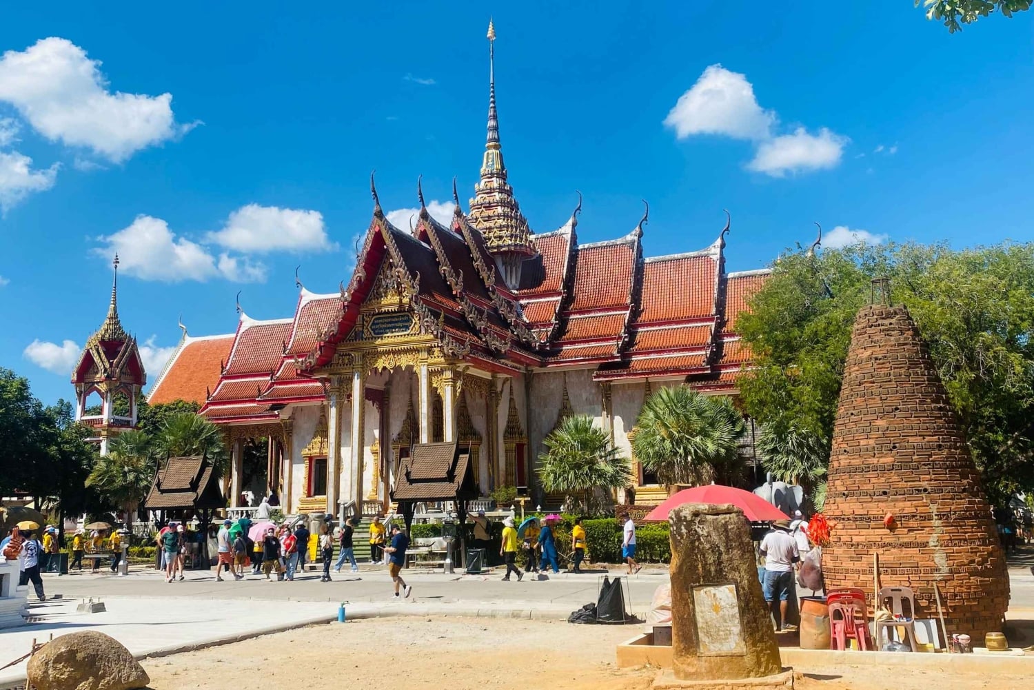 Ознакомьтесь с самыми известными туристическими достопримечательностями острова Пхукет в Таиланде. Регистрация в отеле Highlights с гидом, который позаботится о Вас, фотографирование, обзорная площадка Большого Будды на Khao Nak Kerd, остановка в Wat Chalong, посещение Phra Mahathat Chedi, высота которого составляет более 20 метров. Внутри храма находятся статуи Будды в различных позах, прогулка, чтобы познакомиться с культурой Старого города Пхукета, а затем шопинг на ночном рынке Чилва. Забрав машину из Вашего отеля на Пхукете, полюбуйтесь природной красотой острова, проезжая по живописным пляжным дорогам. Далее посетите смотровую площадку Большого Будды или Кхао Нак Керд. Полюбуйтесь 360-градусным видом острова с широким обзором Пхукета, Ката, Карона, бухты Чалонг и других мест, а также понаблюдайте за обезьянами, притаившимися на деревьях. Далее Вы посетите Ват Чалонг, самый большой храм Пхукета, куда приходят как местные жители, так и туристы, чтобы отдать дань уважения покойным, почитаемым монахам, включая Луанг Пхо Чам и Луанг Пхо Чуанг. Полюбуйтесь прекрасными произведениями искусства, украшающими стены храма, и умиротворенной территорией, окружающей это место. Оцените красоту и традиции благословения буддийских монахов во время экскурсии в храм Большого Будды (временно закрыт) или Ват Чалонг. Ваш дружелюбный гид расскажет о том, как эти благословения очищают карму, создают счастье и приносят удачу, пока Вы будете наблюдать за тем, как монахи скандируют, поют и льют воду в честь праздника. У Вас будет уникальная возможность посетить местную фабрику по производству кешью - обязательный пункт для всех любителей орехов! Считается, что этот местный продукт Пхукета обладает мощными целебными свойствами. Вы сможете попробовать сок ореха кешью, а также узнать, как кропотливо добываются, запекаются и ароматизируются эти драгоценные орехи. Далее посетите город Пхукет. Мы сделаем остановку у местного продуктового ларька и попробуем популярные и вкусные блюда местных жителей Пхукета. Отсюда Вы продолжите прогулку по Старому городу Пхукета, открывая для себя невероятную китайско-португальскую колониальную архитектуру, модные художественные галереи, а также классические кафе и рестораны. Следующая остановка - Наслаждайтесь покупками в Chillva-Night Market Phuket с уютной атмосферой с тенистыми деревьями в центре. Здесь есть множество площадок для выступлений, включая живую музыку. Наслаждайтесь прослушиванием одежды, сувениров, ресторанов и напитков. Кроме того, в каждом магазине есть свои идеи по оформлению магазинов.Includes