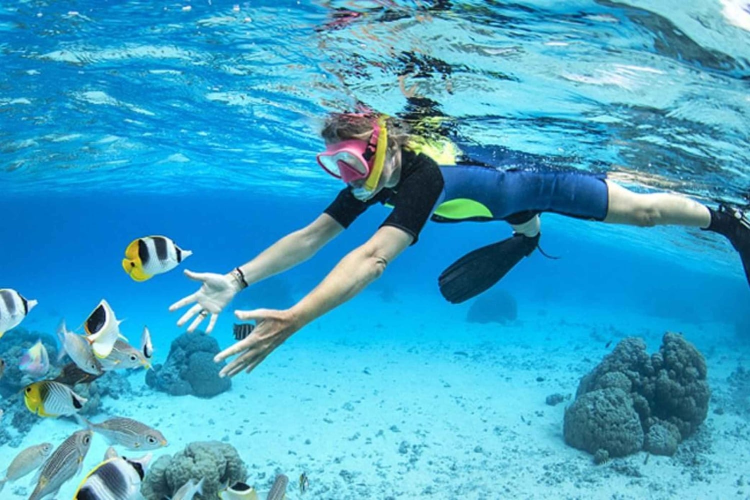 - Поплавайте с маской и трубкой в кристально чистой воде с предоставленным снаряжением.