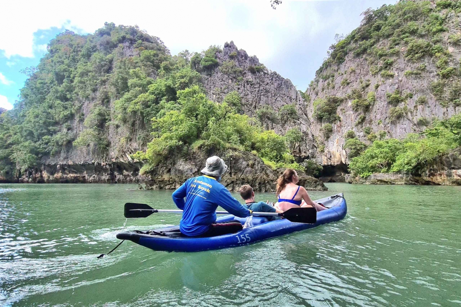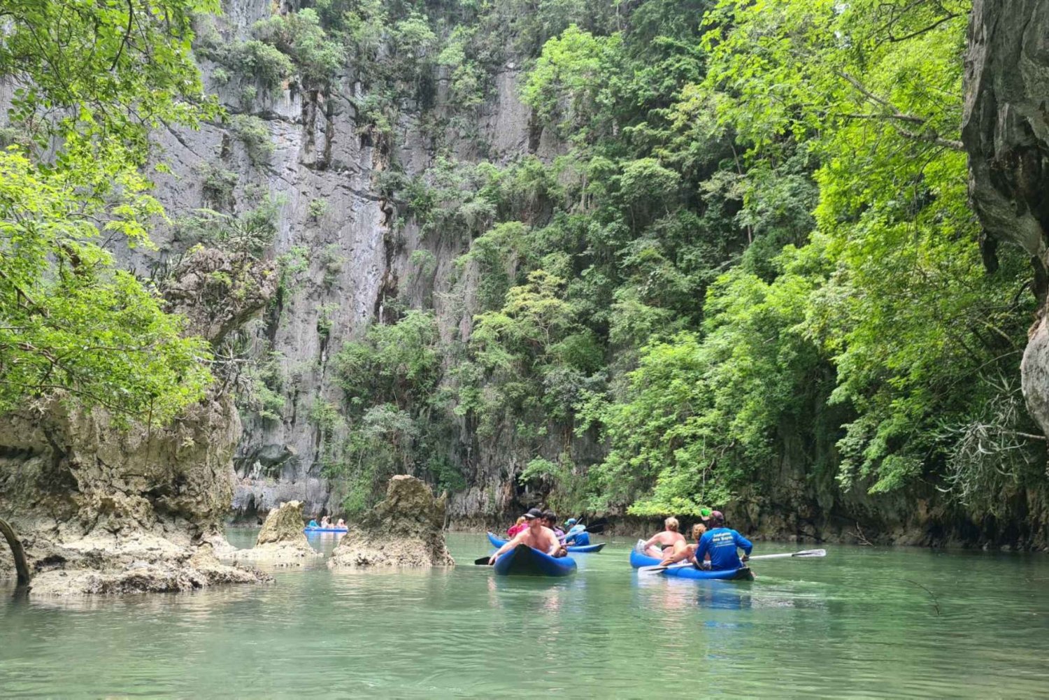 09.30-10.30 Hämtning på hotellet med minibuss 11.00Ankomst till Ao por-piren, nordost om Phuket, När du väl är ombord på båten, var snäll och diskutera inte om du vill ta på dig flytvästarna; det är tydligen ett lagkrav och besättningen kommer att övervakas av tjänstemän när de befinner sig på eller i närheten av piren. Avresa till nationalparken Phang Nga Bay, rolig, säkerhetspresentation. Uppblåsbara kanoter utformade för 3 personer: guiden, som sköter all paddling, sitter längst bak, med 2 gäster framme. 11.40Kryssning till stranden, det kommer att finnas gott om dricksvatten och snacks. Det är också ett bra tillfälle att smörja in sig med solkräm. Också en bra tid att få 'sjöben', öva på att gå på båten Detta var ett tillfälle att ta ut kanoterna och paddla för oss själva, eller helt enkelt att simma på stranden en stund. 12.20Ankomst till Phang-Nga Bay, paddla och utforska de två mest kända öarna (Panak Island), gå in i grottor 20-150 m. (mörka, långa) navigera dig genom grottorna och till lagunerna, visa dig apor, fladdermöss, vandrande fiskar och anmärkningsvärda klippformationer. 13.30Lunchbuffé som serveras ombord med olika thailändska alternativ och färsk frukt, men inget för kryddigt.Vår resa omfattade en förbi-åkning av den ikoniska James Bond-ön, där vi stannade flera minuter för en fotomöjlighet (inget besök eftersom det alltid är mycket folk där). 15.30 Ankomst till Hong Island , den mest populära ön är en cirkel av klippor i havet som omger lagunen. Det serveras även grillade kycklingar på den sista resan tillbaka till piren. 18.00Ankomst till Ao por-piren och transfer till hotellet. 18.30 - 19.00Ankomst till hotellet. Anmärkning: Eventuella specialallergiker som äter mat. Vänligen meddela oss före utflyktsdagen.Includes